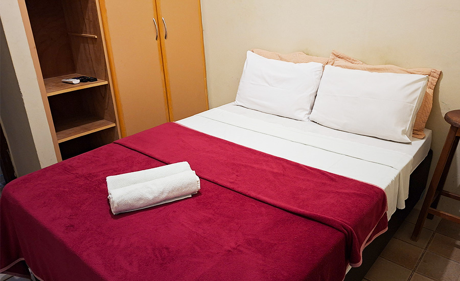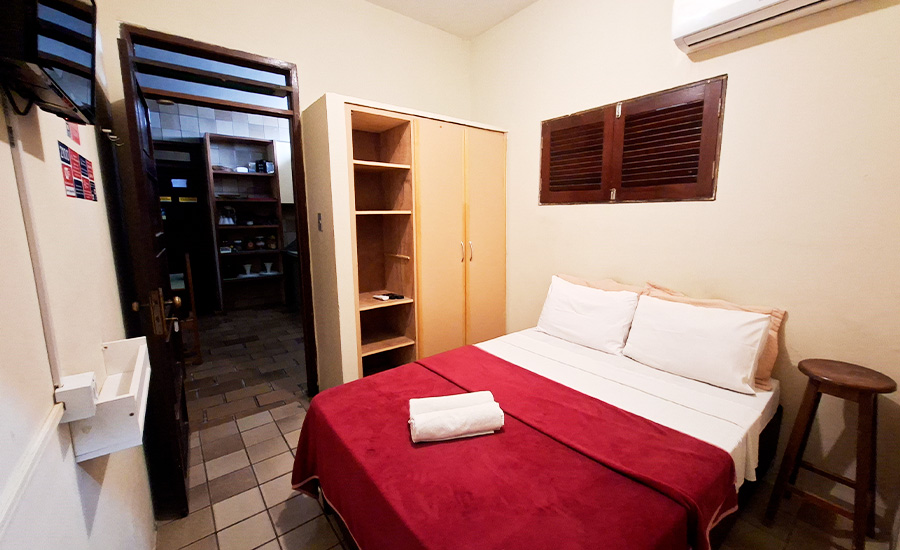 • Possui: 1 Cama de Casal, Smart TV, Ar-condicionado e banheiro com chuveiro elétrico.